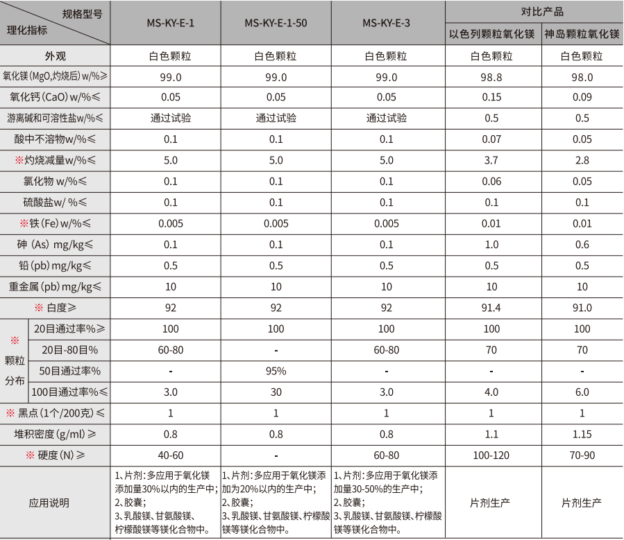 產品描述:本品為白色顆粒,無臭、無味、無毒,在空氣中容易吸收水分和二氧化碳,溶于酸,幾乎不溶于水應用行業(yè):廣泛應用于食品、保健品、醫(yī)藥行業(yè)片劑、膠囊劑、甘氨酸鎂、檸檬酸鎂等的生產加工